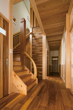 木材をふんだんに使用した丈夫なケヤキの階段。階段