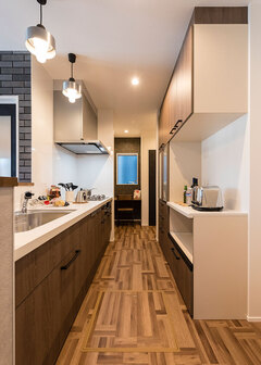 住まう人の個性を雄弁に語る外観と、暮らす人の心地よさをもたらすインテリア。どちらにも同じレンガを用いた“男前スタイル”の家が誕生した。縦空間の広がりや変化をもたらす「多層空間®」で、暮らしやすさとデザイン性を両立する同社の新たな「プレゼンハウス®」は、細部の素材使いにも注目したいスタイリッシュな一棟だ。壁にレンガやコンクリート調のクロスを用いたインダストリアルデザインのダウンフロアリビングは、人気のヴィンテージ調の家具や小物が似合う。一方で、玄関から水回り、キッチンと回遊できる、主婦目線の動線や、家族の繋がりを考慮した吹き抜けや階段の位置など、多くの注文住宅を手掛けてきた同社のノウハウがふんだんに盛り込まれている。この家は静岡市清水区にあり、問合せをすれば見学することもできる。