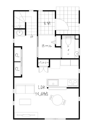 この2階建ての3LDKの間取りは、家事を効率的にこなせる快適な生活を提供します。リビングダイニングとキッチンの配置は、料理をしながら家族とのコミュニケーションを楽しめるように配慮されています。また、主寝室と子供部屋の間にはプライバシーが保たれるようなレイアウトが取られています。家事動線も考慮されており、家族がストレスなく暮らせるように設計されています。この間取りは、施主の要望に応えながら、やさしい暮らしと家族の幸せを叶えることができます。