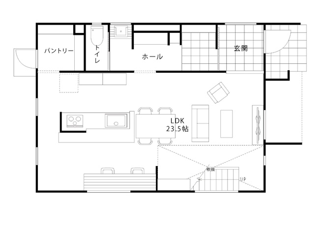 広々とした敷地に建つこちらの平屋は、ペットと快適に共に暮らせる環境です。ご夫婦それぞれ趣味部屋を確保し、気兼ねなく好きなことに集中できるように設計しました。さらにリビングから庭やバルコニーとのつながりを重視し、自然光を取り入れた明るい空間を実現しています。お施主様のお家のイメージの赤毛のアンのお家のように、活気と温かみに満ちた暮らしを叶えるこの平屋の住まいは、お施主様のライフスタイルにぴったりの一軒です。