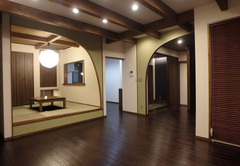 自然素材を使用した癒しの住まい。木の温もりと、癒しの灯りを各所に設け、「帰るのが愉しみになる棲まい」をご提案いたします。