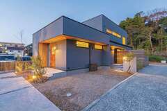 建築中、通りがかりの人に「カフェですか」と尋ねられたほど、一際目を引くI様邸。開業の夢を抱く奥さまとご家族を思いやるご主人の“人生を愉しむ家”が完成しました。