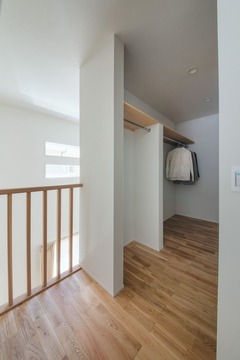2階のウォークインクローゼットは3畳の大容量スペース。主寝室の向かいで、身支度がスムーズにできるように配置した。