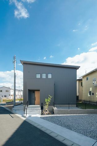 当初ご希望されていた平屋を意識した二階建てを設計。大空間の吹抜けを設けることで開放感が生まれ、家族一体で団らんできるように。外構もシンプルかつライトアップを数か所設けることで、中と外どちらから見てもまとまりのあるお家に仕上がりました。