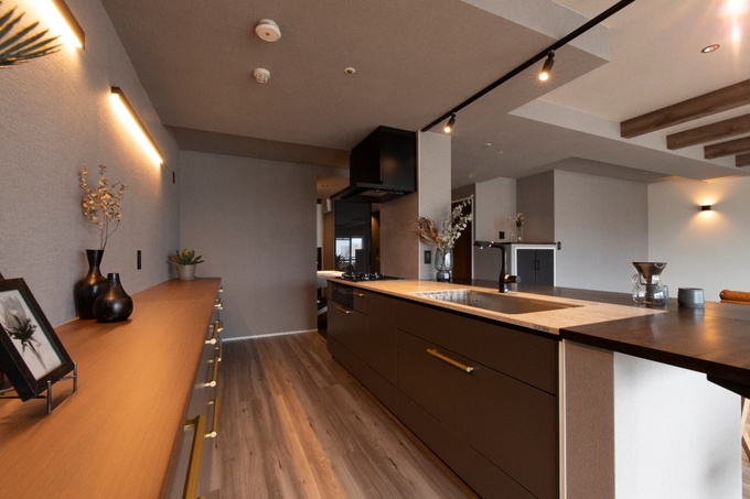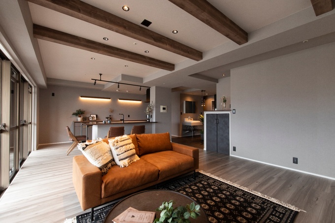3LDKだった間取りが、単世帯向け1LDKの間取りに大変身。都会的でホテルライクなインテリアスタイル空間に仕上げました。