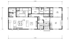 この2階建ての6LDKの間取りは、二世帯住宅や将来の変化に対応する柔軟性を持ちながら、収納スペースの豊富さが整理整頓をサポートします。リビングは広々としており、ゆったりとくつろぐことができます。施主の要望を満たしながらも、家族全員が快適に過ごせるライフスタイルを実現します。