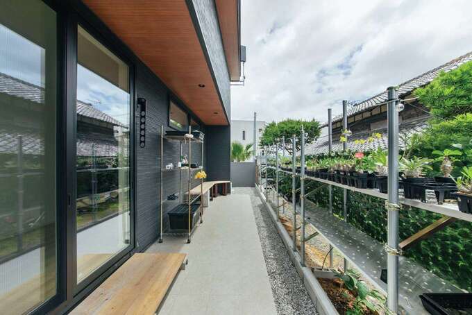 ユニークな樹形が愛らしいと人気の「塊根植物」。それを種から育てるのが趣味のご主人は、いずれ店舗を開くことも想定し、新居に塊根植物を置いて世話をする作業部屋を希望した。一方、奥さまのこだわりは、家事ラクで合理的な間取り。夫妻の理想を形にした新居は、20畳のLDKに隣接した開放的な作業スペースとテラスデッキが印象的な住まいだ。テーブルを置かずにキッチンカウンターで食事をとるスタイルと勾配天井で、、子どもがのびのび遊べる広々リビングも実現。奥さまは家事の効率化で時間にゆとりが生まれ、ご主人は塊根植物の手入れがスムーズにできる暮らしが叶った。「自由設計に加え、担当の新谷さんとの出会いがあったからこそ理想の家を実現できました」と夫妻は満足そうにほほ笑んだ。