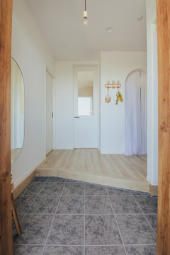 ご主人は他社の職人さんですが、構造見学会をご覧いただき、当社の家づくりや建物の構造に納得されて当社をお選びいただきました。プランニングでは、特に帰宅した際の動線にこだわり、暮らしやすい間取りが実現。色のコーディネートにも奥さまのセンスが活かされています。