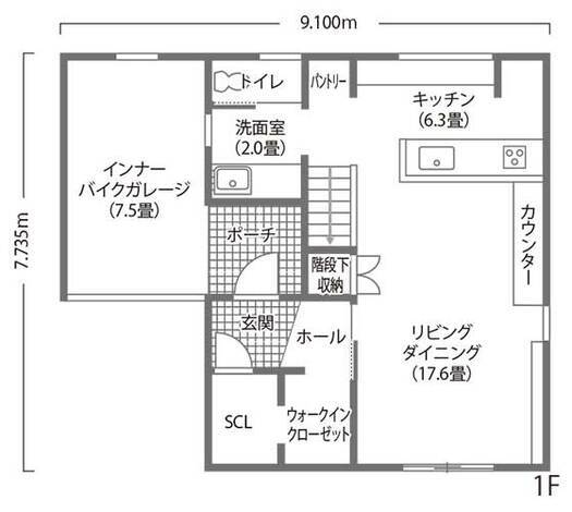憧れのバイクガレージがと暮らしやすさを両立した間取り
