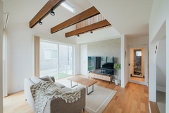ナラの無垢材を使用したリビングは、ソファを置かず床に座る《ロースタイル》。 また、家事や収納を効率的に行えるランドリールームや2つのウォークインクローゼットも完備し、家事の負担を大幅にカット。豊富な収納スペースで、整理整頓しやすく快適な生活をサポートします。 また、リビングとデッキスペースとのつながりも重視し、自然の光と風を感じられる癒しのスペースを確保しました。