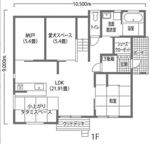 施主の願いを叶え、ペットとの共生をより豊かなものにするため、提案された平屋の間取りは心温まる暮らしをサポートします。自然光が満ち溢れ、室内に明るさと開放感をもたらす設計となっています。収納スペースは効率的に配置され、整理整頓が容易に行えるため、快適な生活環境を提供します。さらに、中二階は追加のスペースを提供し、家族とペットが思い出を育んだり、リラックスできる場所となります。屋外には広々としたドッグランを用意し、ペットとの楽しい時間を過ごすことができます。施主のパートナーであるペットとの絆を深め、共に幸せな暮らしを築くことができる、魅惑的な間取りです。