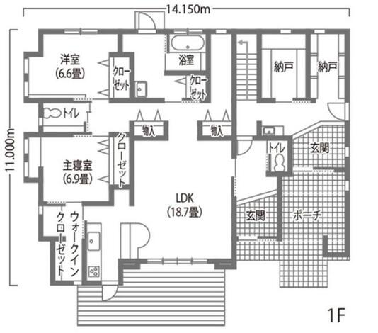 玄関から入って和室、リビング、WIC、洗面脱衣室、トイレと用途に合わせていろいろなお部屋にアクセスできる間取りが特徴的。ご家族が多いお家でも、だれでも使いやすい間取りにこだわりました。