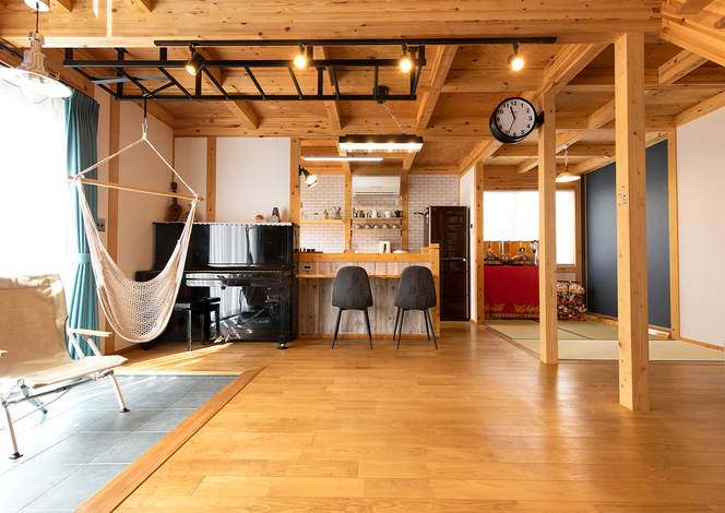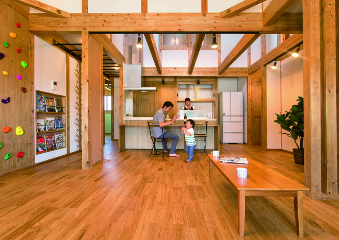 たくさんの木を使用して日本の伝統工法で建てる「真壁づくり」は、施工に手間がかかり、建築費用も高騰するのが一般的。しかし『サイエンスホーム』では、設計・施工・現場管理を自社一貫体制で行っているため、人件費を大幅に削減することができる。また、北海道から沖縄まで同社の家づくりに賛同した工務店が100社以上加盟するグループのスケールメリットを活かすことで、ひのきの注文住宅を建築本体価格1,000万円台〜で実現。理にかなった設計手法に加え、こういった無駄のない一括大量仕入れや工期短縮などの企業努力により、子育て家族でも十分手が届く価格での提供を可能にしている。だから、新生活も住宅ローンに圧迫されることなく、穏やかで豊かな暮らしを楽しむことができるのだ。