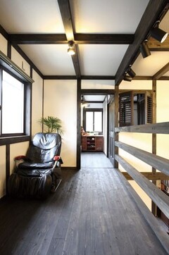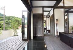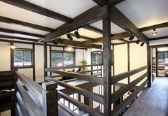周囲を山々の緑に囲まれた土地に建つT邸。吹き抜けの開放感あふれる室内は、真っ白な漆喰の壁と黒い柱や梁とのコントラストが美しい。リビングの大きな窓を開けると、目の前に広がる雄大な山を借景として取り込み、四季折々の風景を愉しむことができる。ウッドデッキとつながるリビングとダイニングは外との境界を曖昧にし、より空間の広がりを生み出している。しかも、この心地よいLDKが北側を向いていると聞いて驚いた。一般的には、日当りの良い南面にリビングを配置するものだが、北面の方が視界が開けているのを感じ取った担当の三角さんの提案で、家づくりのセオリーに挑戦したのだ。吹き抜けの高窓を通して南からの光と風をLDKに採り込むと同時に、屋根の長いひさしが直射日光を遮り、山に反射した柔らかな光が室内に届くため、省エネで快適な暮らしを実現。設計士と施主さんとの強い信頼関係から生まれた木の家は、理想以上の住み心地をもたらした。