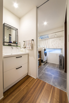 洗濯、アイロンが同じスペースでできる脱衣室。