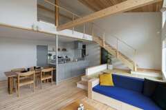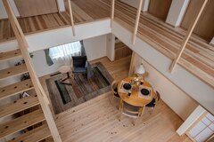 吹き抜けで家族がつながる天然木の二世帯住宅