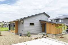 縦と横の広がりが絶大な開放感天然木の平屋風・三世代住宅
