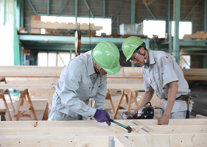同社は、建物を面で支える「2×4(ツーバイフォー)工法」をいち早く取り入れ、地震に強い安心・安全な住まいを地域に提供し続けている。本社隣接の中部エリア最大級のツーバイフォー生産工場では、建物の骨組みとなるツーバイフォーパネルを生産している。自社グループの工場があることで、国の基準を満たした高品質な製品を安定的に供給でき、スピーディな生産により工期の短縮も実現。さらに、中間マージンや輸送コストも省けるため、高品質な家を低コストで提供できる。日本ツーバイフォー建築協会では、阪神・淡路や東日本大震災などの日本各地の被災地が続けているツーバイフォー工法の家の被害程度は、震度6や震度7の大地震で被害が無いか軽微な被害までに留まり、被災後もそのまま暮らせる住宅が97%以上を占めることが報告されている。
