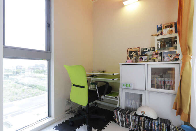 主寝室から続く書斎。南に面した窓が大きく、北側もバルコニーと隣接して明るい