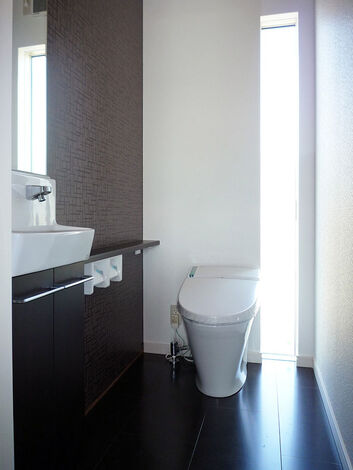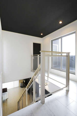 「バーのようなおしゃれな空間で暮らしたい」と望んでいたSさん。天井をできるだけ高く、窓を大きくとり、家全体をモノトーンでコーディネートした。キッチンに立つと、吹き抜けの空間にスケルトンの階段と庭の景色を見渡せて、奥さまの料理タイムがより楽しくなりそう。全室の床を白いフローリング、天井に黒いクロスを貼り、ダウンライトを採用したことでムーディな大人の雰囲気に仕上がった。また、家族がどこにいても気配を感じられる間取りなので、安心して暮らすことができる。「自分たちの要望に対して、これはいいけど、それはやめた方がいい。こうすればもっと良くなりますよ、と吉川社長からプロのアドバイスをたくさんしてもらえたのが嬉しかったです」とご主人。予算から1円もオーバーすることなく、理想以上の家が完成したことで、新築後の暮らしにもゆとりがあるそうだ。