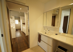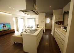 共働きのご夫婦がお子さんを見守りながら生活しやすいよう、とくに、収納と家事動線にこだわりました。キッチン回りの収納と動線はよくできていると自負しております。明るく開放的なLDKは25畳あまりもあり、心にゆとりをもって生活することができます。