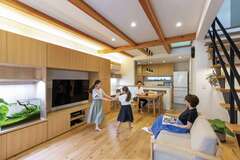デザインが素敵で、地震に強く機能性も高いこと。フットワークの軽さや、細かいリクエストに応えてくれる柔軟なところにも惹かれました。人がたくさん集まる家なので、開放的でオシャレなLDKに大満足! 「生活感を見せずに、でも暮らしやすい」という当初の理想が叶いました。