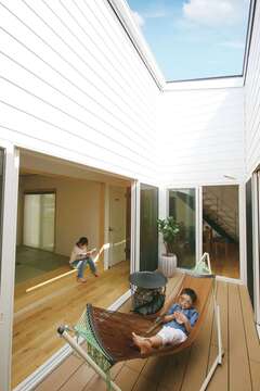 奥さまも絶賛する「イクメン・家事メン」のご主人は、何十社もの住宅会社を見て回り、デザイン・構造・性能・コストなど、トータルバランスにすぐれた『片桐建設』をパートナーに選んだ。完成した住まいは、一見平屋のようにも見えるおしゃれな外観で、カヴァードポーチがアクセントになっている。日当たり抜群の室内は、開放感あふれる吹抜けのLDKや中庭など、常に家族のつながりを感じるプランニングが特徴。夫婦共働きということで、子どもたちも自分でお片づけしやすい収納計画や無駄のない家事動線を備え、家族団らんの時間を増やした。さらに、大容量の太陽光発電、薪ストーブも設置し、光熱費を抑えた低燃費な暮らしを実現。長期優良住宅とZEHもクリアしたパーフェクトなU邸は、幾世代まで安心して住み継がれていくだろう。