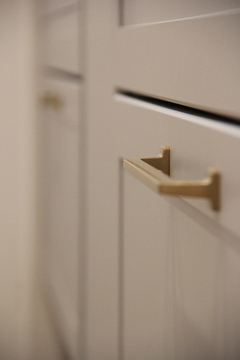 キッチン扉の取っ手もゴールドでそろえたキッチン