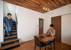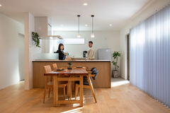性能重視で、大手ハウスメーカーを中心にモデルハウスを見て回りました。しかしどこも一長一短で、デザイン性にも乏しく、物足りなさを感じていました。そんなときにネットで見つけた『日本住建』さんを訪ね、大手に負けない高い断熱・気密性能と自由度の高い設計力に惹かれて決めました。外観デザインはお任せして、室内は木のぬくもりを感じる落ち着いた雰囲気に仕上げてもらいました。性能の高さは想像以上で、エアコンの温度を低めに設定しても快適に過ごせます。提案してもらったダウンフロアのリビングが特に気に入っています。