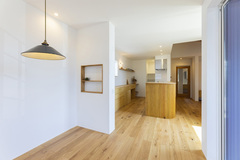ハウスメーカーでの家づくりには、興味がありませんでした。自分たちの好みに合う工務店を探していたとき、安城のライフスタイルショップsoup.の紹介で『温戸ライフ』さんを知りました。他の工務店や設計事務所にも話を聞きましたが、『温戸ライフ』さんのプランは見た目のお洒落さはもちろん、収納や間取りも日々の暮らしやすさが考えられていると感じました。引越しや家具を含めた予算イメージなど、価格についてもしっかり説明いただいたことも決め手に。取手ひとつからこだわった住まいは、住み心地も快適です。