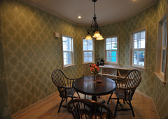 建設中の『リンゾー』さんの家にひと目惚れして、飛び込みで会社を訪ねました。社長からいろいろな説明を受けて、デザイン以上に性能がいい家であることを知り、契約することにしました。ひと口に輸入住宅といってもたくさんの種類があります。家族で話し合い、全員一致で「クイーン・アン」スタイルに決めました。普通のインテリアだと面白くないので、床や腰壁にエイジング塗装を施し、新しい家なのに使い込んだように見えるようにしてもらいました。これから新築する人は、デザインと性能が高いレベルで両立する輸入住宅も選択肢の一つに入れてみてはいかがでしょうか。