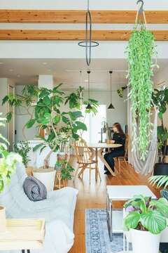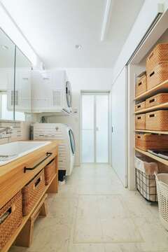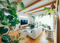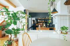 奥さまは整理収納アドバイザー。日常の暮らしを丁寧に切り取ったインスタグラムは29万人のフォロワー数を誇る。そんな奥さまが『セブンハウス』で新築したのは7年前で、当時本誌の表紙も飾った。久しぶりに訪れたM邸は、飴色に熟成した無垢の床が味わいを深め、植物も増えてボタニカルな空間にアップデートされていた。玄関から浴室まで一直線につながる動線、アイランドキッチンを中心とした回遊動線は、新築当時からずっと共働き夫婦を支えている。「7年経っても不満がないんですよ」とほほ笑む奥さま。インスタで全国の家族に影響を与えたこの家は、10年、30年先も輝き続けるだろう。