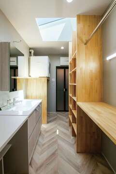 とても仲良しなご夫婦。収納を気にされていたので、洗濯→アイロン→たたむの家事動線や生活を楽しむ空間創りができました。