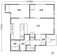 | 階数 平屋 | 延床面積 52.17m² [15.78坪] | 敷地面積 189.69m² [57.38坪] |