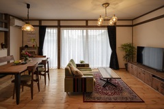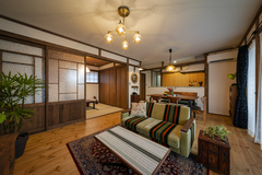 真壁を採用して、昭和レトロなリビングに。個性的なオーダー家具でおしゃれな空間に。和室