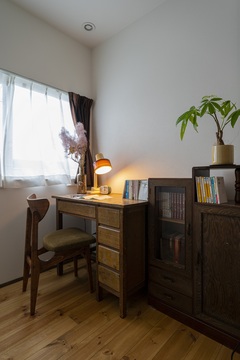 書斎にはご実家で使っていた古いデスクと、合わせて購入したアンティーク家具を。玄関