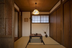 縁付畳や天井の板張り、障子窓やレトロな照明。懐かしくて和む和室に仕上げた。洗面スペース