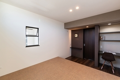 シンプルで機能的な居室。デスクスペースが備わっており、作業や勉強に適した環境を提供する。コンパクトながらも快適な空間設計である。ウォークインクローゼット