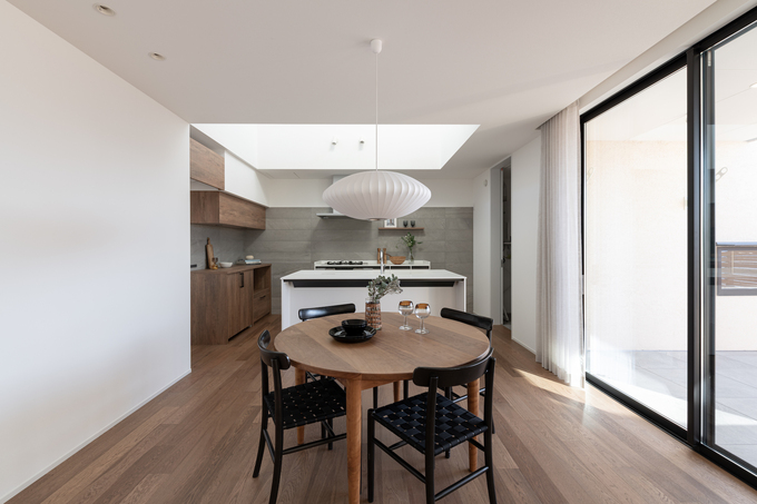 効率やコストカットを重視して量産するスクラップ&ビルドから脱却し、ロングライフな建築文化の構築を目指している。住まい手の価値観と調和させる、自然環境を上手く取り入れる、その上で耐震・断熱性を高める。これが同社の大切にする「機能性」だ。注文住宅はデザイン重視で機能性や性能が落ちるのではと思う人もいるが、同社は暮らしを最大限豊かにするための基盤である「家の強度」を重要視している。自然災害が多い日本で永く安心して暮らすために、一邸ごとに敷地の環境を読み解き、構造設計(許容応力度計算)や断熱計画、耐久性の検証を行っている。そのデータに基づいて耐震等級3、断熱等級5を標準とし、完成時C値0.5以下を担保するため、気密測定は断熱施工時と完成時の2回実施。お客さまの要望に応じて断熱等級7まで断熱性を向上させることもできる。