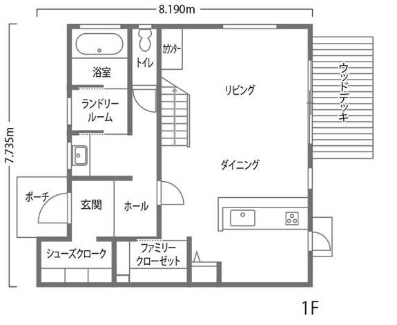 LDKとウッドデッキがゆるやかにつながる開放的な設計、収納力のあるパントリー付きキッチン、そして洗面室〜脱衣室〜浴室が一直線につながる家事ラク動線など、機能性と居心地の良さを両立しています。2階には主寝室と2つの子ども部屋、そしてたっぷり収納できるWICも配置。 限られた敷地の中に、家族の今と未来を見据えた住まいの工夫を詰め込みました。