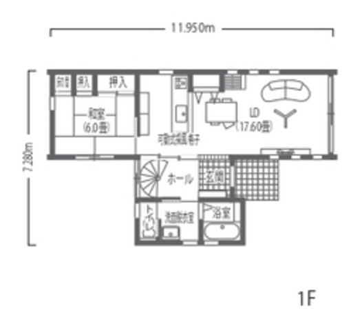 家全体を「おもてなし空間」と考え、玄関からリビング、らせん階段を上がって2階ホールへ抜けるゾーニングをご提案しました。玄関ホールの扉を開放すると、18畳のLDKが22.5畳に。オリジナルの可動採風格子で風が家中を循環します。