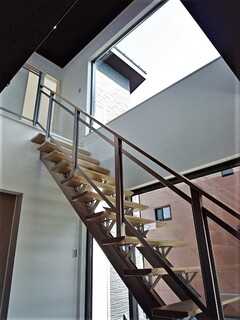 分譲マンションの売却からお手伝いさせていただきました。西側の大きなスリット窓は暑いですよとご忠告しましたが、それでも構わないからとデザインを優先されたM様。引き渡しから10年経ちましたが、今も西側の堤防から室内のスリット階段が美しく見えます。