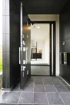シックでモノトーンなデザインがお好きなご夫妻。グリーンを効果的に使ってインテリアを楽しんでおられます。中庭でBBQやプールもできますね!