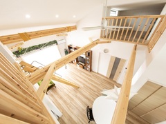 小屋裏とロフトが吹き抜けを間にしてあるので明るい