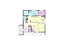 この2階建て5LDKの間取りは、施主の要望であるゆったりとくつろげるリビング、プライバシーを確保できる個室、そしてガレージを完璧に実現します。2階に配置されたリビングは開放感に満ち、外が見えるお風呂なども組み込まれ、日々の生活をより豊かに演出します。一方で、各個室はプライバシーを大切にしながらも使い勝手に配慮されており、家族それぞれがくつろげる空間を提供します。ガレージの設置は快適で便利な生活を叶える一環として、車を保管しながら家族の暮らしに貢献します。この間取りは、自然な暮らしと都会的な利便性を両立させ、施主の理想的なライフスタイルを体現します。
