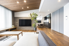 広々としたリビングに差し込む自然光が心地よい空間を演出します。効率的な家事動線により、忙しい日常もスムーズにこなせます。スキップフロアーが生む開放感とプライバシーを兼ね備え、家族がゆったりとくつろげるリビング空間を提供します。グラフテクトによるデザインは、施主の要望を満たし、明るく快適な生活を叶える魅力的な住まいとなるでしょう。