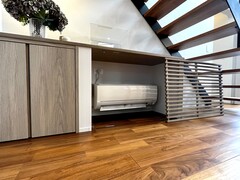 趣味と家族時間が楽しめるお家です。ご夫婦の趣味のお部屋に、家族が楽しく集まれるウッドデッキを設計。趣味のお部屋は2階の隠れ家ですが、リビングとの空間がつながり広々と過ごせます。リビングは勾配天井で、明るく快適に。ウォークインクローゼットは6.5帖あり、圧巻の収納力です。