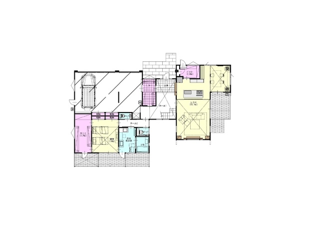この平屋の3LDKは、施主様の要望を完璧に満たす設計です。広々としたリビングルームはくつろぎの空間を提供し、家事スペースも効率的に配置されています。また、寝室の配置や水回りがLDKから離れていることで、帰宅や就寝時間のズレを気にせずに生活できる環境が整えられています。リラックスしながら暮らしを充実させる、施主のライフスタイルにぴったりな間取りとなっています。 お子様がこれからということもあり、子供部屋はあえて分離せず、のちに分けられるように計画しております。