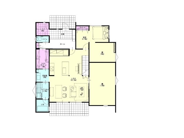 この2階建ての6LDKは、施主の要望を満たす快適な生活空間を提供します。吹き抜けがあり、開放感あふれるリビングはゆったりとくつろぐのに最適です。お風呂からの眺めも楽しめるため、日々の疲れを癒す贅沢な時間が過ごせるでしょう。家族や友人とのふれあいを大切にする方にぴったりの間取りです。