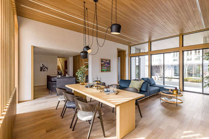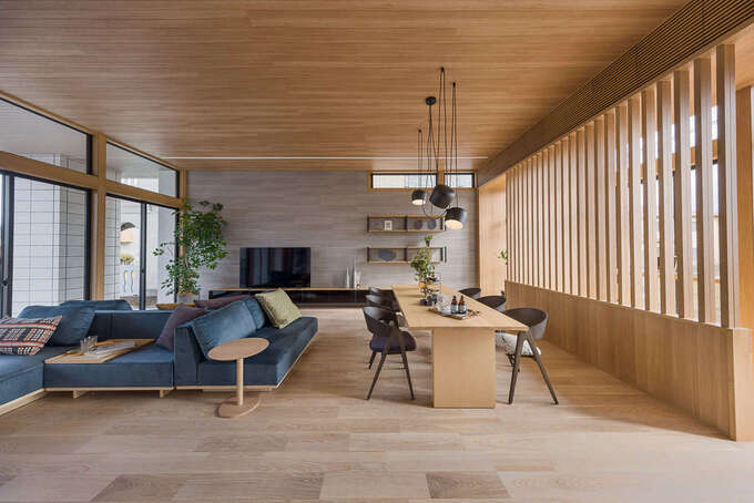 スタイリッシュなデザインが施された見た目はもちろんだが、『ミサワホーム静岡』が空間づくりでもっとも大切しているのは、家族が快適に暮らせること。とくに、3.3mもの高天井が叶える大空間や、全面ガラス窓などを採用した開放感あふれるリビングは、同社らしさが光るシンボリックな住空間だ。一方で家事をスムーズにする動線や、集中収納と分散収納を効果的に配した間取りが、日常の快適性をアップ。用途に合わせたフレキシブルな空間設計も。さらに、二階建て・4層のフロアを実現する大容量収納「蔵」は、単純に収納空間を増やすだけでなく、暮らしを豊かにするゆとりスペースの象徴でもある。家とテイストをそろえて統一感を生みだせるオリジナル家具も充実している。